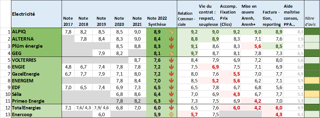 Palmarès 2022 des fournisseurs d’électricité