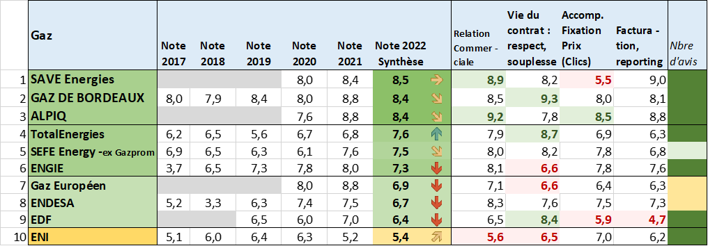 Palmarès 2022 des fournisseurs de gaz
